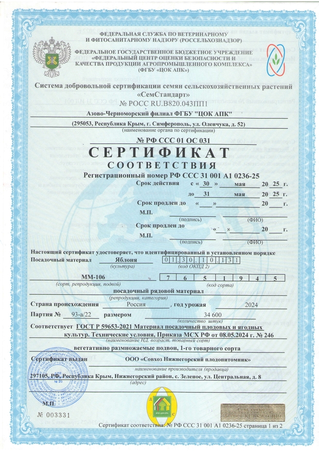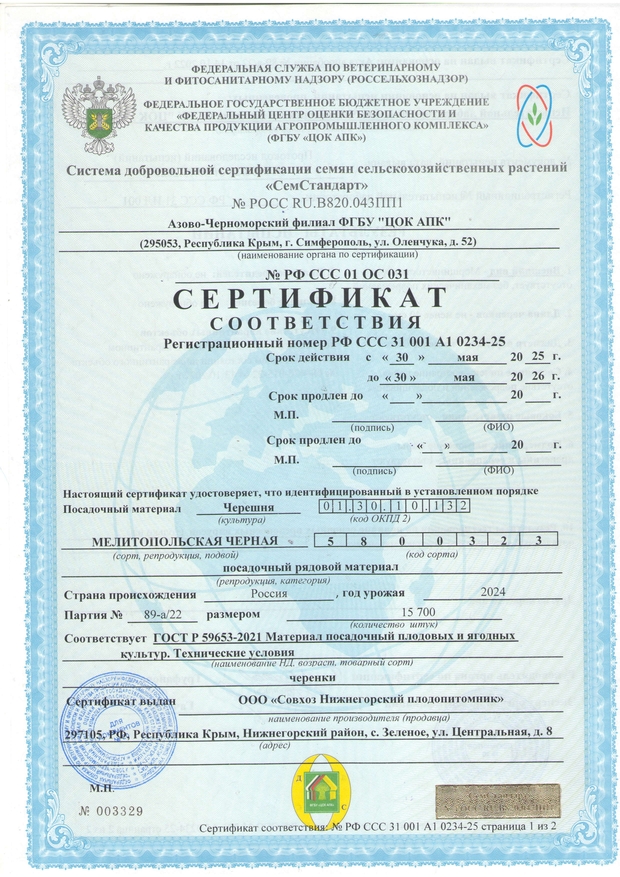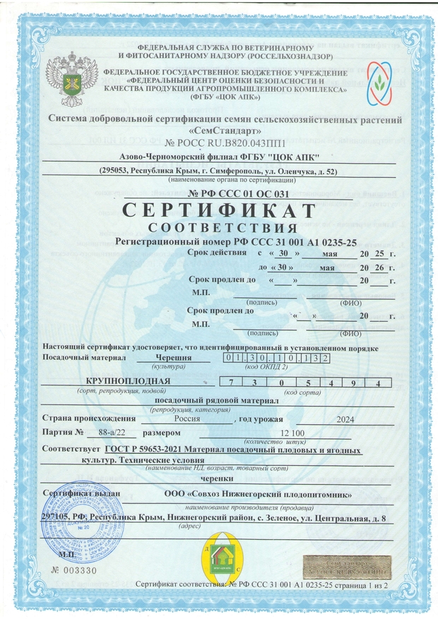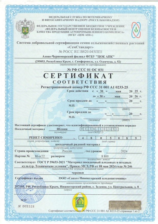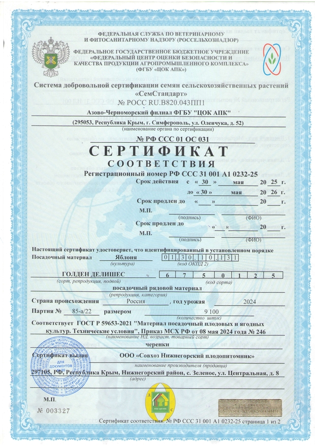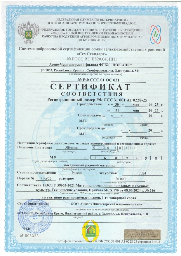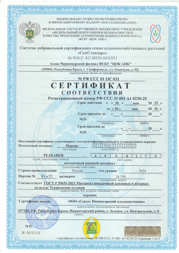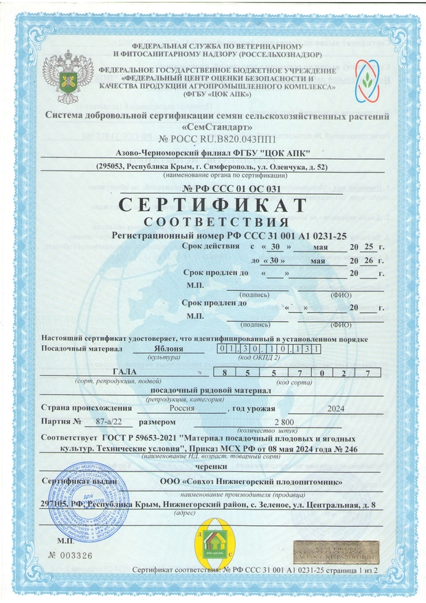 После выкопки все саженцы плодовых деревьев проходят фумигационную обработку от вредителей и болезней, что в значительной мере повышает продуктивность будущих насаждений. Подтверждается актом обеззараживания, на основании которого выдается карантинный сертификат. Обратите внимание, что при самом строгом контроле качества у нас одна из самых доступных цена на саженцы Крыму, что дает возможность получить уникальный посадочный материал всем желающим.
